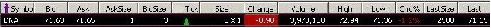 4. 1 акция DNA сейчас стоит на 90 центов (на 1,2%) дешевле, чем она стоила вчера на момент закрытия торгов.