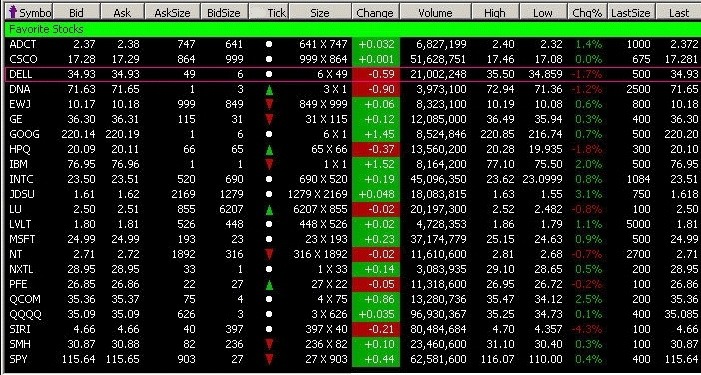 2. У акции растущий Tick (Uptick — зеленая стрелка в таблице), то есть ее стоимость возросла минимум на 1 цент по сравнению с предыдущей.