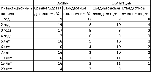 Таблица 2. Среднегодовые доходности и риски Источник: Богл Д. «Не верьте цифрам! Размышления о заблуждениях инветоров» По части методов управления рисками и их минимизации в формировании инвестиционно-спекулятивного портфеля управляющие могут использовать следующие методы: — ограничение доли спекулятивной части определённым процентом, с целью поддержания долгосрочной стабильности портфеля на случай изменения конъюнктуры рынка, ликвидности в спекулятивно управляемых инструментах и, как следствие, возможных сбоях в реализации спекулятивной стратегии; — использование инструментов с широкой диверсификацией и меньшими комиссионными издержками – ETF, как для инвестиционной части, так и для спекулятивной; — сокращение возможного сильного новостного гэпа (ценового разрыва) по отдельно взятой бумаге при реализации спекулятивной стратегии путём использования инструментов, торгующихся 24-е часа (ряд биржевых свопов — CFD), ETF, где за счёт широкой диверсификации ценовой разрыв находится в рамках среднедневного изменения цены; — активное использование стратегий хеджирования фьючерсами и опционами; — выбор временного интервала удержания позиции – более низкая оборачиваемость портфеля и более длительное удержание статистически уменьшают среднеквадратичное отклонение.